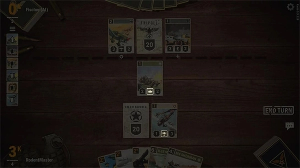 每个回合开始时,从卡组里抽一张牌加到手牌里。一副卡组一共是40张卡牌,里面来自同盟国家的卡牌最多不能超过12张。