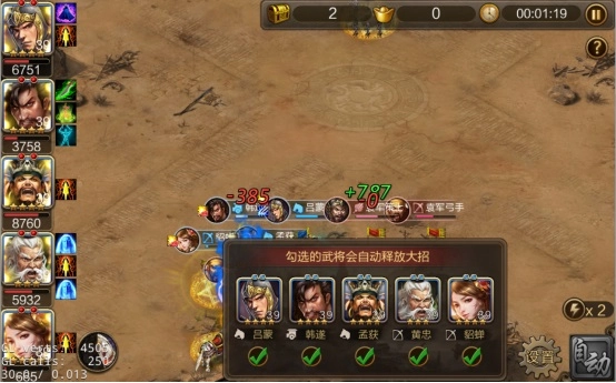 点击战场右下方的自动按钮后,系统会启动自动战斗模式,此时所有武将将自行寻找敌人展开战斗,且当战意值累积满时会自动释放技能。