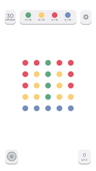 游戏正式开始后,左上角会显示本局的可移动次数,玩家需要在中间区域收集带颜色的圆球,只要满足相应条件就能顺利过关。
