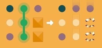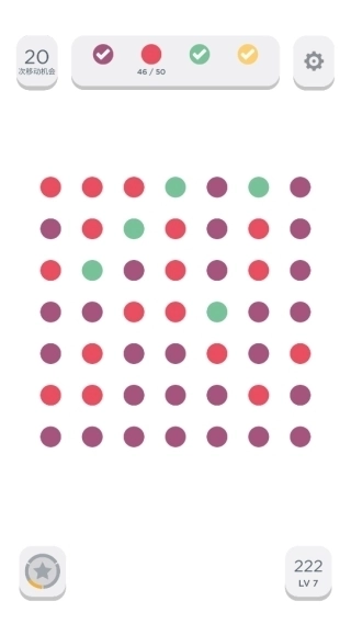 规则:当2个及以上相同颜色的圆点在横向或纵向相连时,即可将它们消除;消除后,新的圆点会从顶部掉落,填补空缺的位置。