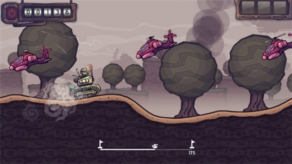 4、值得一提的是,游戏加入了进度条机制,玩家可以在屏幕下方直接看见自己的坦克所行进到的位置里重点还有多远,节奏感超强,快来试试吧。