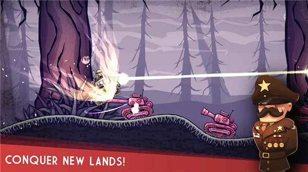 5、游戏中坦克有集中不同的攻击方式,多重炮、激光炮、速射炮,还有护盾,玩家可以在不同的敌人种类上使用不同种类的武器,击败他们,到达胜利的彼岸。
