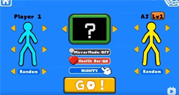 1、首先大家进入至尊决斗者火柴人游戏,打开游戏后能看到人机模式和1v1模式,还可以和好友开展1v1的pk对战。