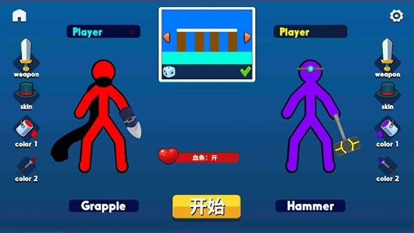 3、小编以双人模式为例,上方能选择地图,左右两侧可调整火柴人形象;