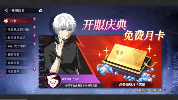 3、活动时间内,福利月卡免费送,每日上线可以领取大量钻石月卡奖励!