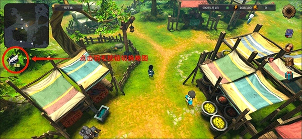 出门之后就会遇到一个小女孩,她会告诉你如何去法提城。点击左侧的“羽毛按钮”就能看到大地图了,但是和平镇通往其他地方必须先经过【枯岭】。