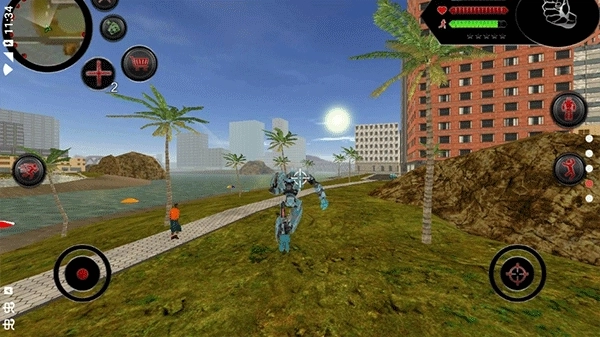 在这个开放世界中,玩家能够自由探索海洋区域、岛屿小镇等场景,深海的神秘诡谲与沙滩的阳光灿烂,都能清晰地展现在眼前。海洋与陆地上分布着形形色色的敌人和挑战任务,玩家需要突破重重难关,例如躲避警察的追查、击退军队的包围以及应对狡猾的匪徒。变形鲨鱼打造了一个宏大的真实世界观,玩家既可以操控3D机器人在海洋里灵活穿梭,也能切换为人类形态,在高度拟真的城市环境中随意行走。玩家甚至能在陆地上与其他机器人激烈对战,或是潜入海底探索未知的奥秘,游戏为玩家提供了无限的可能。