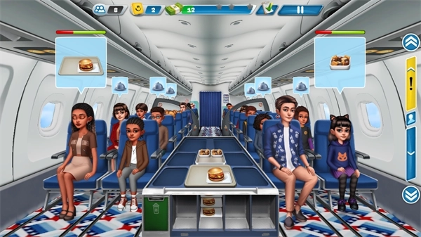 7、关于笑脸积累,送餐和收餐盘这两项工作都能获得笑脸,但收餐盘若延误了就拿不到了。所以,要是你的送餐时间比较充裕,不妨先去收餐盘再送餐,或者两者交替进行,一旦看到有需要收的餐盘就赶紧处理;在等待顾客点餐的间隙,可以多在机舱内走动走动,这样更容易吸引乘客来申领耳机、毯子之类的物品,笑脸积累的速度也会更快一些。