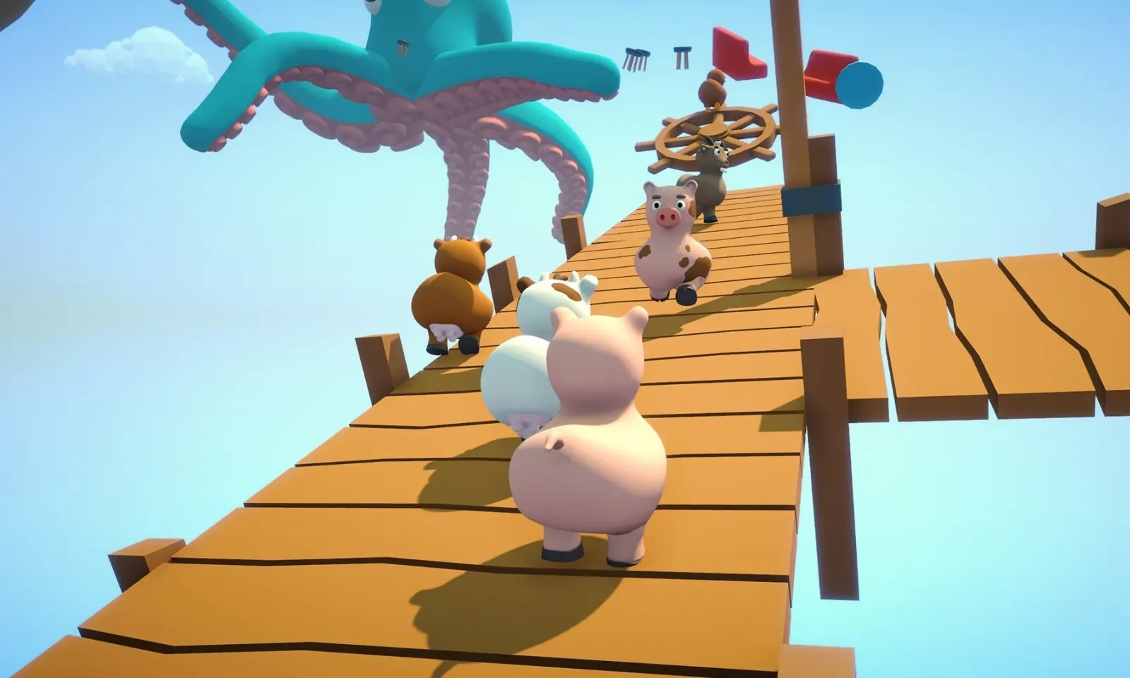 4、和你的同伴进行竞争、或是合作,想办法到达顶峰。角色设计圆润可爱,如小熊、小鹿、小兔子等动物形象憨态可掬,动作笨拙却充满喜感。