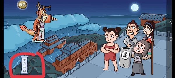 第四关:点左下角的午时三刻,把针拖到15(10和15中间都行),三个随从会变小,各点一下,不要点哪吒,会失败