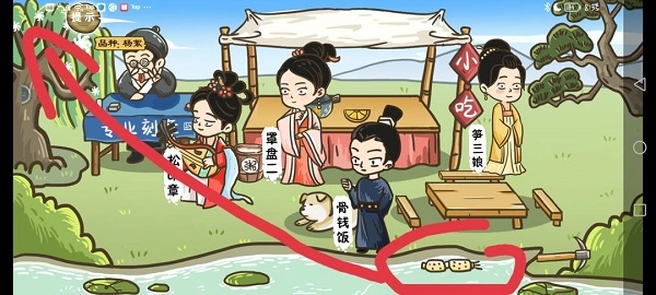 第四个:把摊后面的人拖到凳子上,把竹笋拖到桌子上