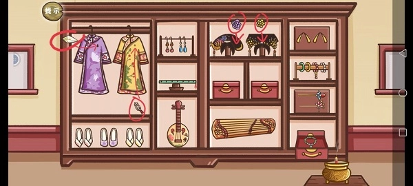 第十一关:在香燃完前如图示把东西放好,三个一样的箱子有固定格子,如果不行就换一格,右下角的点一下会打开,一些小部件都单独标了