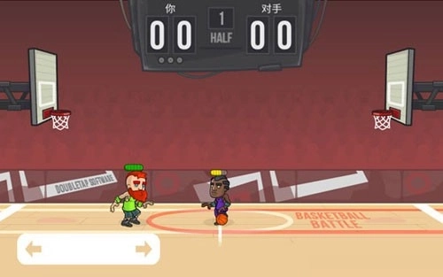 2、我们按住屏幕左下角的两个箭头可控制角色移动,用手指按住屏幕右侧空白区域能控制角色跳投,但跳投时需注意一点:当主角跳到空中时就得放开手指,否则角色不会将篮球投出去。