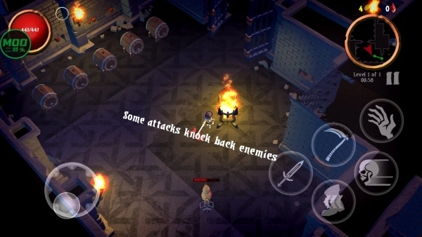 暗黑Q萌的独特画风:以暗黑魔幻风格为基底,融入Q萌的骷髅角色造型,让角色既幽默可爱,战斗时的特效又十分酷炫;地牢、下水道等4大生物群系场景细节满满,简约的画风里也能带来十足的沉浸感。