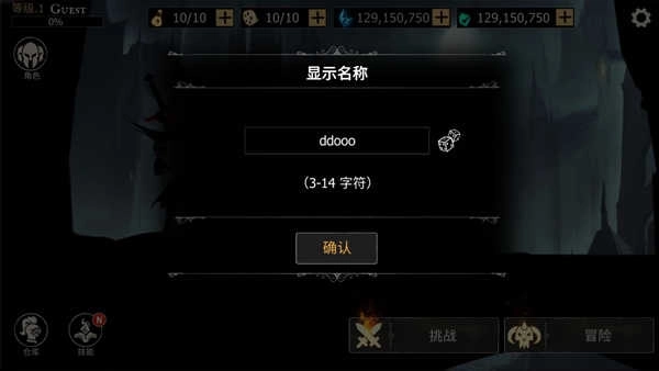 1、启动死亡之刃应用,点击开始按钮,第一步先为角色取一个悦耳的名字;