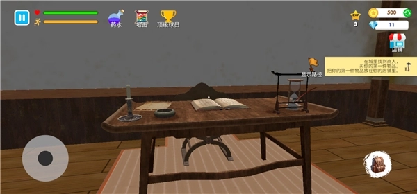 3、进入游戏后,我们按照左下角的提示查看日志并取走钱袋。