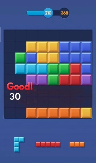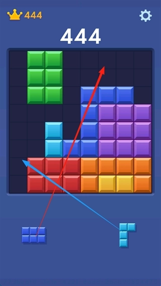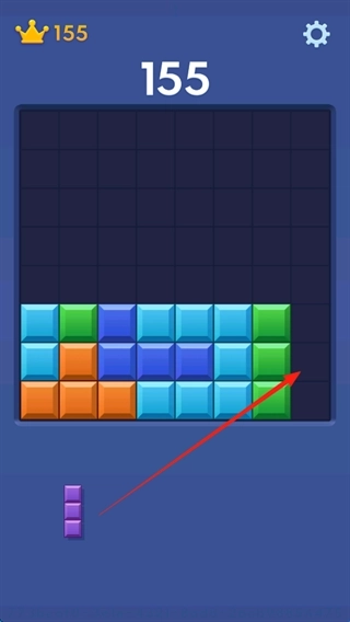 1、屏幕下方会不断刷新出各种形状的方块,玩家需要把这些方块拖拽到上方8×8的大方块网格的空缺位置,只要填满任意一整行或者一整列,就能触发消除并获得分数。