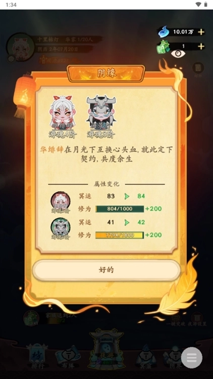 当特定妖怪组合在一起时,能够触发属性增益效果。例如,九尾狐与玉兔一同上阵,便能提高暴击率。这种设定旨在引导玩家对阵容搭配展开更深入的探索,从而增强游戏的策略深度。