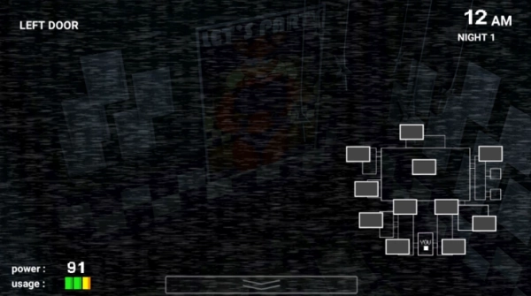 具体概况:在12点到3点不用看监控,也不用关任何门。4点差不多邦尼就来了,这时候如果他站在门口就赶紧关门,你不要看监控,你看监控你就gameover了。如果运气好的话5点就不用看监控了,最好还是时时刻刻都要关注监控。