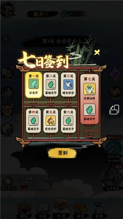2、接着点击屏幕左侧第一个“七日好礼”图标,完成签到即可领取奖励。