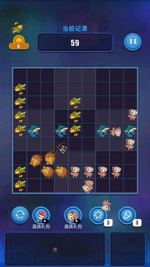 4、把传统方块替换成怪物形象,从底部区域拖动怪物方块进行拼接,只要满足条件就能消除多行内容。