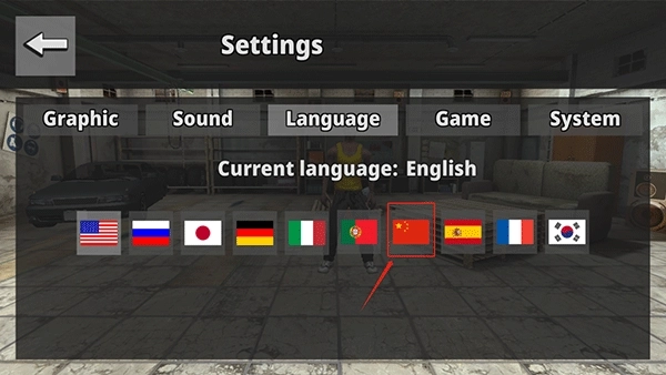 2、然后在语言一栏中点击中国国旗即可