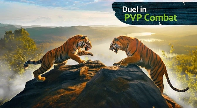 这段文本修改后可以是: 真实感十足的战斗模拟体验:玩家能够模拟老虎的潜行、扑咬等战斗动作,体会身为丛林之王的威严与强大力量。