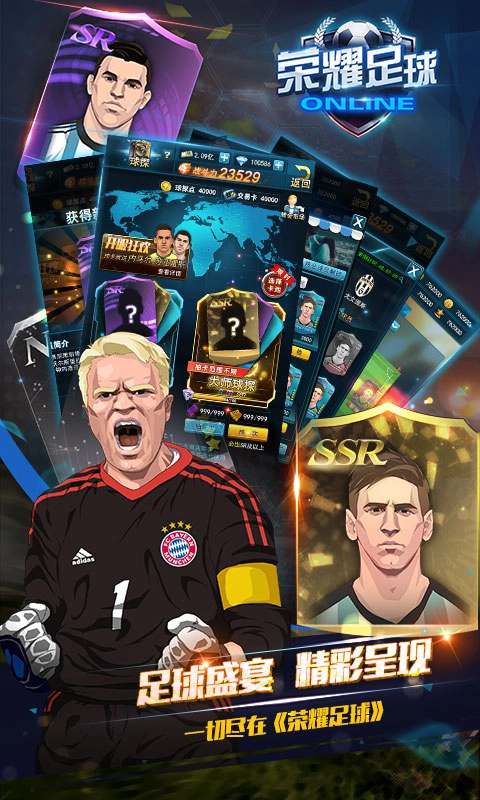 《荣耀足球》是一款汇聚众多足球明星参与比赛的卡牌类球类游戏。在绿茵赛场上,运动健儿们奋力拼搏的身影随处可见,抬脚射门、头球争顶、全力狂奔,他们相互配合,展现出足球竞技的独特魅力。这款游戏以体育运动为素材,采用卡牌对战的战斗模式,通过放置操作,与玩家一同探索足球的无限魅力。