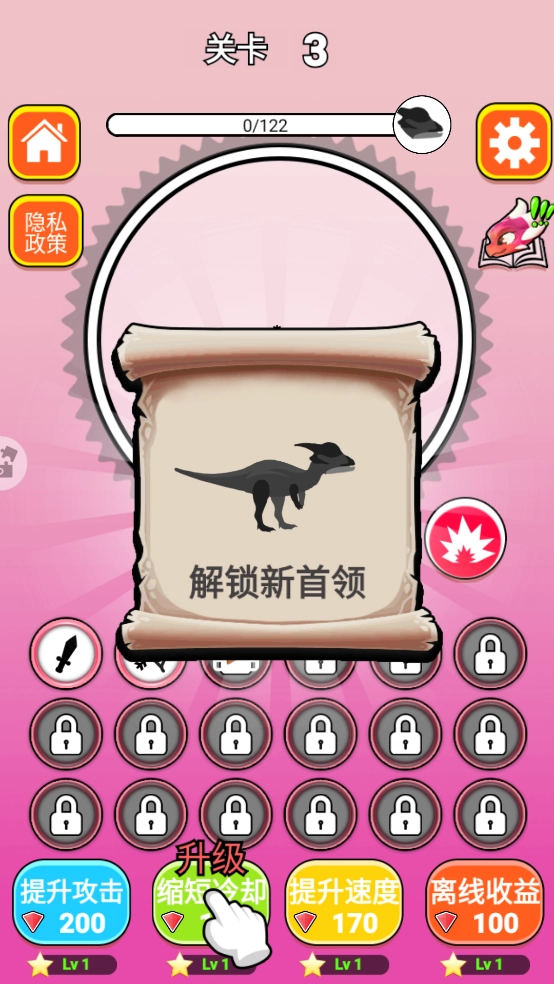 你的资源可用来强化自己军队的实力,更容易战胜恐龙