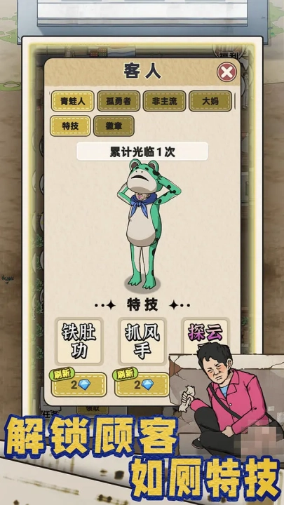 解锁顾客如厕特技。