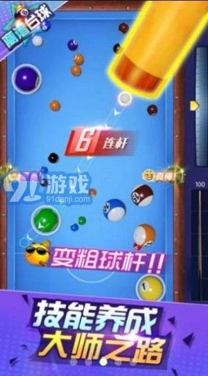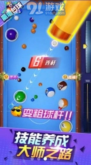 2.玩家在游戏里持续增强自身的实力与技能,最终成为台球领域的知名人物。
