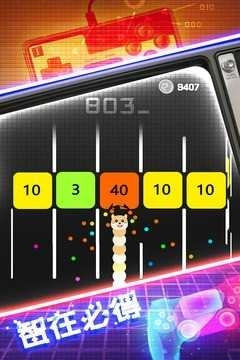 通过滑动屏幕操控贪吃蛇持续移动,收集场景里的各类食物来增加自身血量,同时撞击比自己体积小的数字方块以获得更高分数。