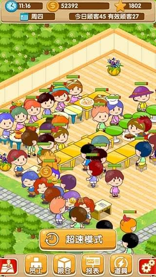 1、在一条热闹繁华的商业街上打造并经营你的专属餐厅,不断推进升级与扩建。