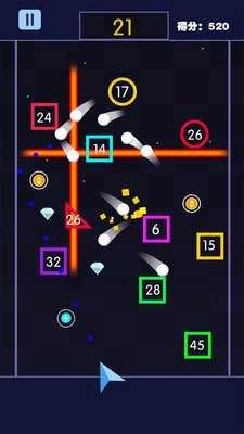 2.借助弹珠的反弹轨迹进行合理规划,击碎不断下落的数字砖块。