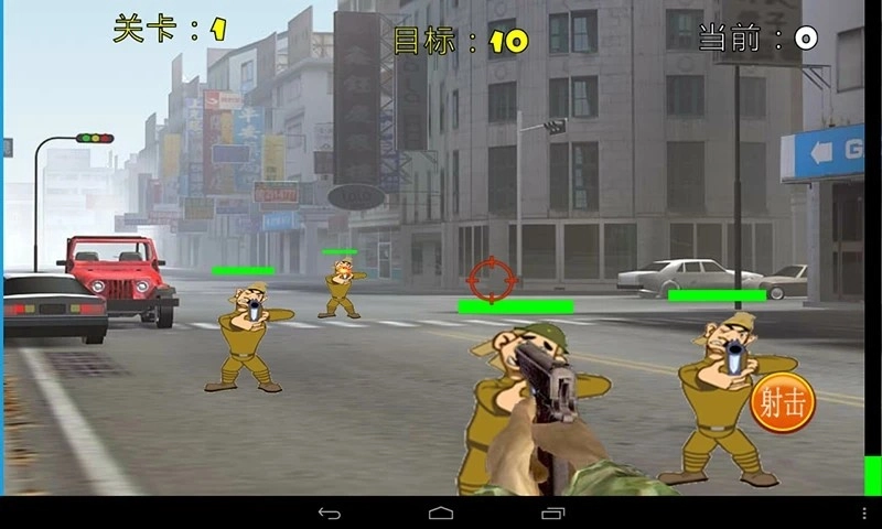 镜头对准目标,按下右侧按键即可开火。这款游戏主要考验你的视力与随机应变的能力,敌人会如潮水般源源不断地涌来,而你的任务就是和敌人战斗到最后一刻。