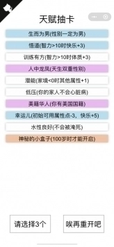 2.在天赋选择阶段,需从给出的选项里挑选三个天赋,它们会对角色的初始属性产生影响。