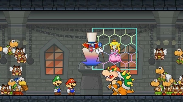 在这款新作里,动作解谜要素会得到更突出的呈现,其中最核心的特色便是“次元技能”——借助这一技能,游戏能在2D与3D世界间自由切换。2D世界的设定和以往作品基本一致,无需多言;而进入3D世界后,角色需要在保持一定体力的前提下行动,不过却能找到那些在2D视角下无法发现的隐藏道具或路径。游戏不再局限于单一的2D空间,而是实现了2D与3D世界的融合。不仅如此,马里奥和路易不再是独自冒险,库巴与公主也会在后续剧情中加入冒险队伍。除此之外,游戏还融入了带有RPG风格的解谜机制与道具系统。