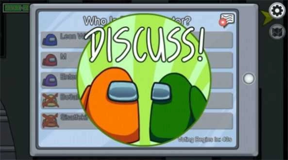 是本游戏的强制环节,当有人报告发现尸体的时候,所有人进入讨论,并且进入投票,票数最多的被扔出空气闸。另外,在游戏过程中,也可以按下紧急按钮,强制进入游戏讨论,紧急按钮每局游戏也有限制次数。