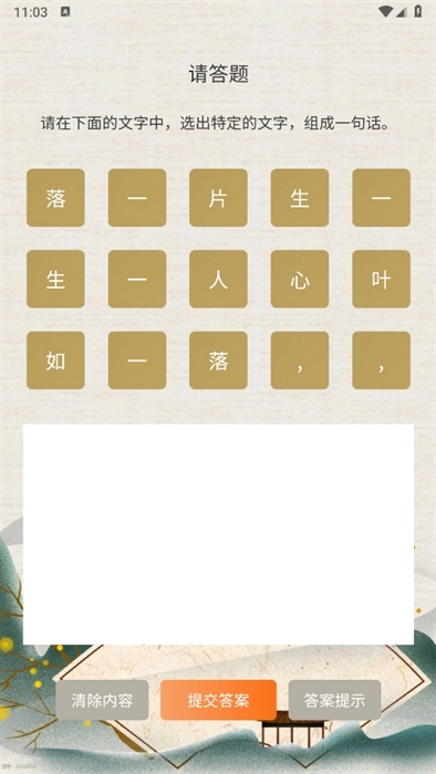 1、博学大师的玩家们能够依据上方呈现的汉字,挑选出自己觉得合适的,再把答案填写到答题卡片上。