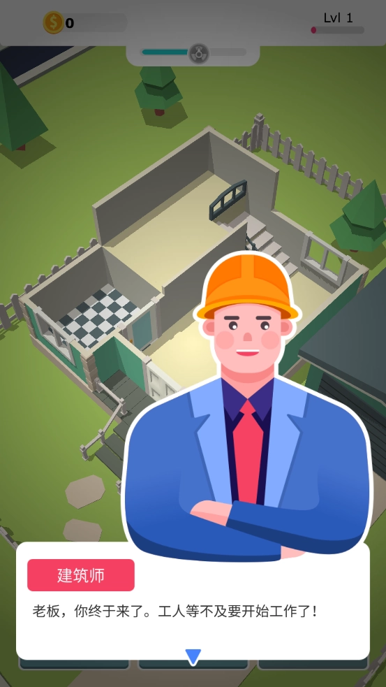 1、在这款轻松有趣的装修模拟游戏里,你只需打开界面,工人们就会自动开展房屋装修工作。你的目标清晰又简单:打造出一栋栋精致美观的住宅!
