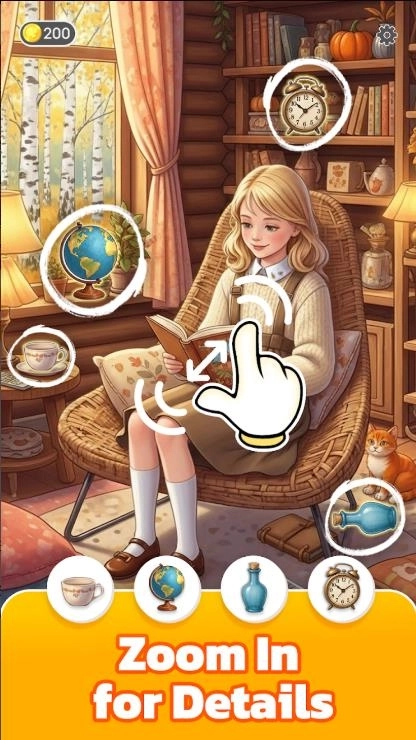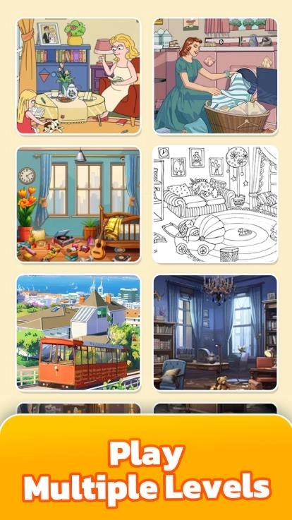 1、在各式各样精致美观的场景里搜寻隐藏物品,达成任务以解锁更多区域。