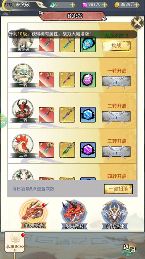 游戏设置了丰富多样的PVE玩法与副本内容,趣味性十足。玩家既能孤身仗剑闯荡“征讨焰狱王”“毒蛊之灾”等特色副本,还能挑战6大BOSS模式,体验不同的战斗乐趣!