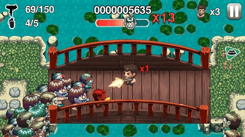 《僵尸时代》是由知名开发商Halfbrick推出的一款动作射击类。故事设定在一个被邪恶僵尸博士威胁的世界中,他企图通过制造僵尸大军来统治地球。在人类危难之际,一位勇敢的小战士挺身而出,拿起武器踏上消灭僵尸的征途。游戏采用卡通风格的画面设计,角色和僵尸都呈现出可爱的Q版造型,一扫传统僵尸题材中的恐怖氛围,取而代之的是轻松有趣的战斗体验。此外,游戏中还设有丰富的关卡内容以及多样化的武器系统,包括狙击枪、电锯、手榴弹等,玩家可以随时拾取使用,快来加入这场热血战斗,感受纯粹的打僵尸乐趣吧。