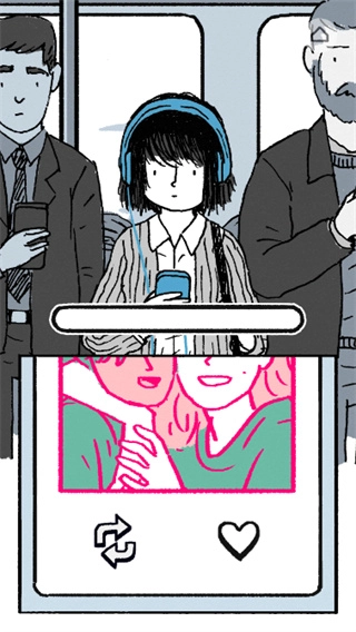 点击下方的切换和爱心按键可以度过主角上班路上的时间。
