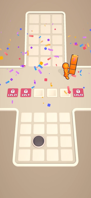 4、拿起盒子,与你的贴纸师匹配颜色,以清除关卡下的盒子!