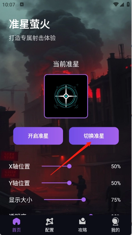 进入到首页点击“切换准星”。