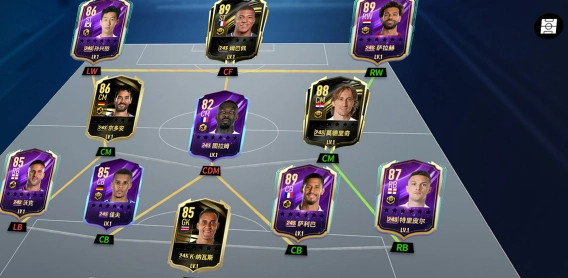 然后进入游戏就是初始阵容,前锋最强的是梅西,中场是哈维,门将是布冯和卡西(这个是个人喜好,像老妇人迷我肯定是布冯啦)当然只有一个5X球员,看你们自己喜欢了,基本选梅西的多,没出来这些球员,就在左上角死劲刷新吧。备注:5X球员选后卫实在浪费,不推荐。