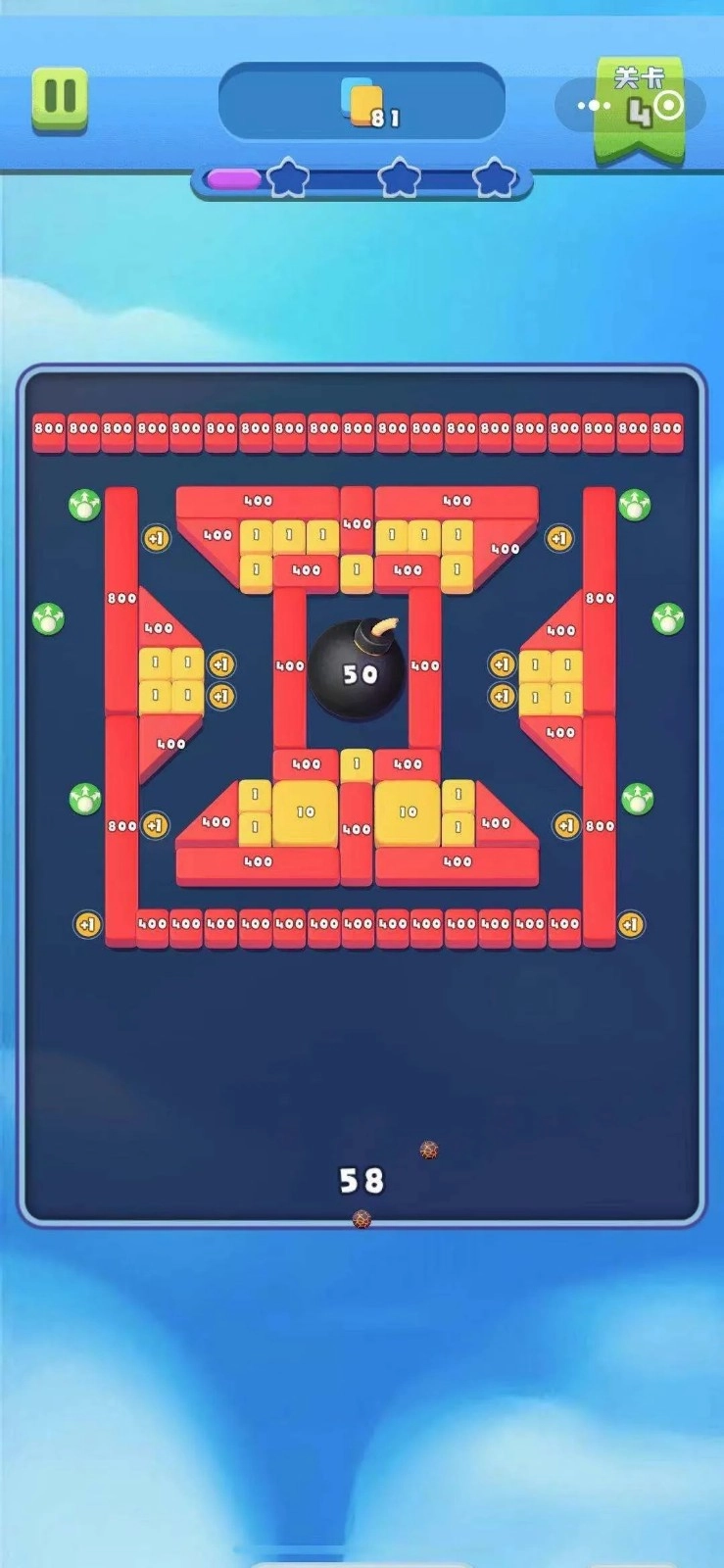 1、这款游戏包含诸多关卡,玩家需充分运用想象力与操作技巧,通过小球撞击方块来完成挑战。