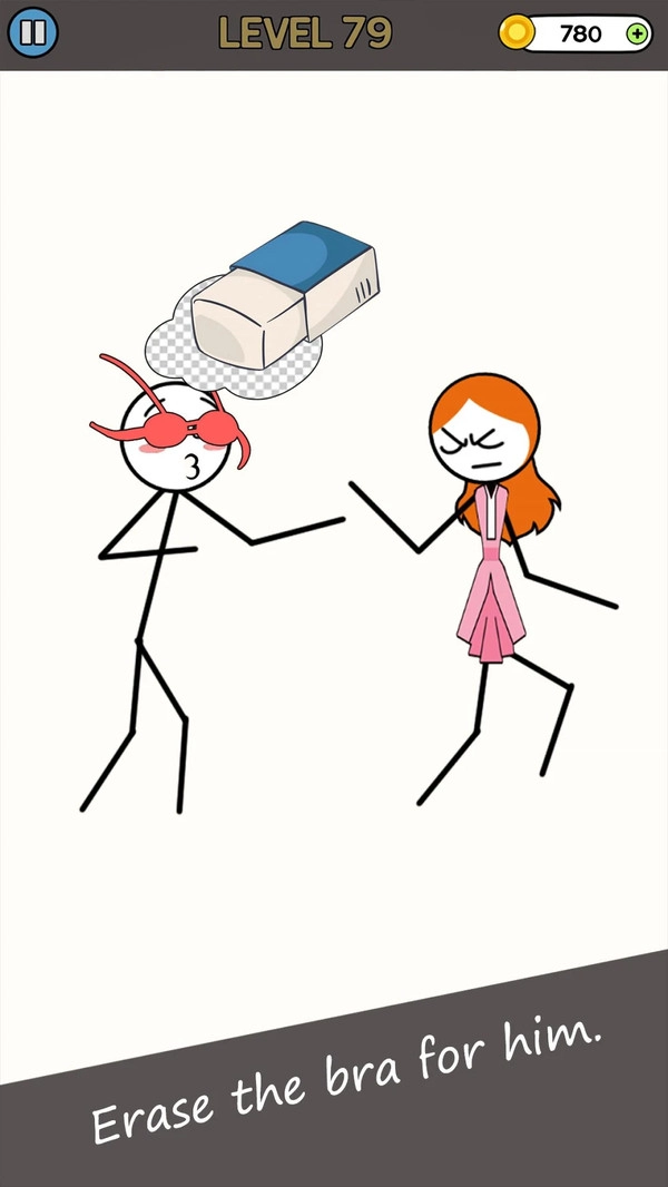 4、更确切地说,这是一款类似脑力达人的游戏,你需要通过用橡皮擦擦除来消除目标物。