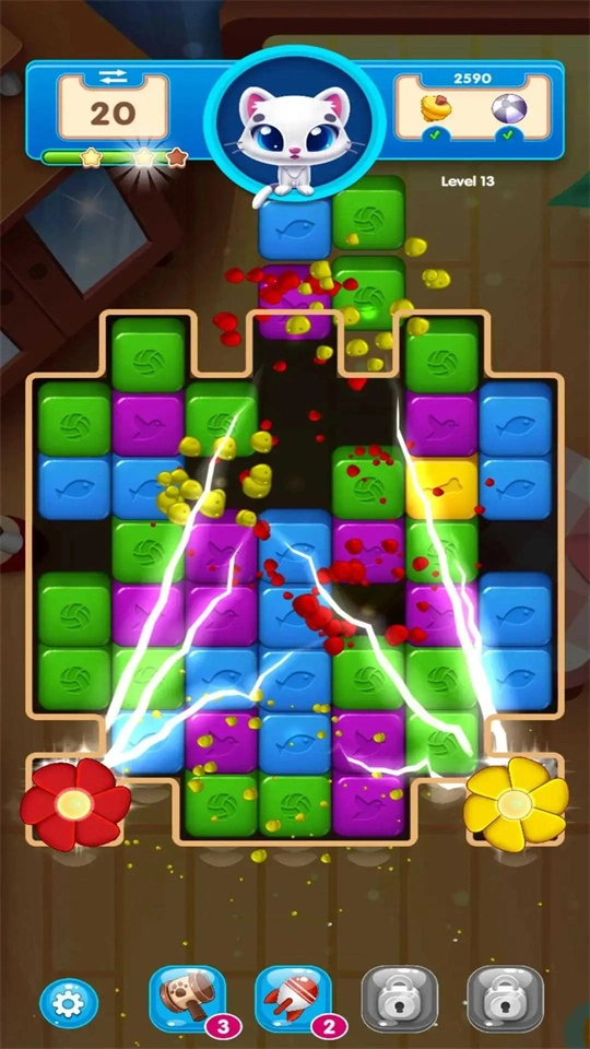 小猫方块积木游戏里有超多方块消除关卡供你挑选,难度等级丰富多样,你可以自由选择挑战,在这里提升消除技巧。完成当前关卡就能解锁下一关,完成任务还能获得专属道具,快来享受最畅快的消除体验吧!